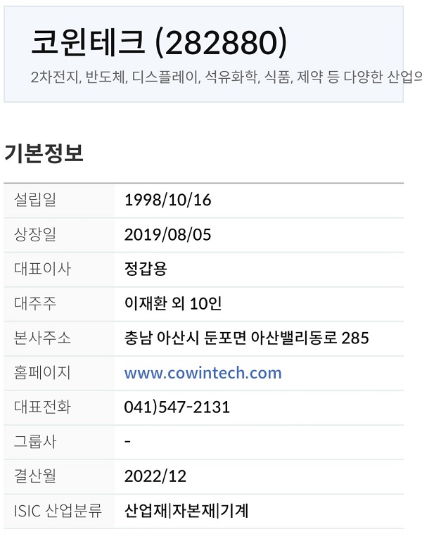 코윈테크 기업 개요
