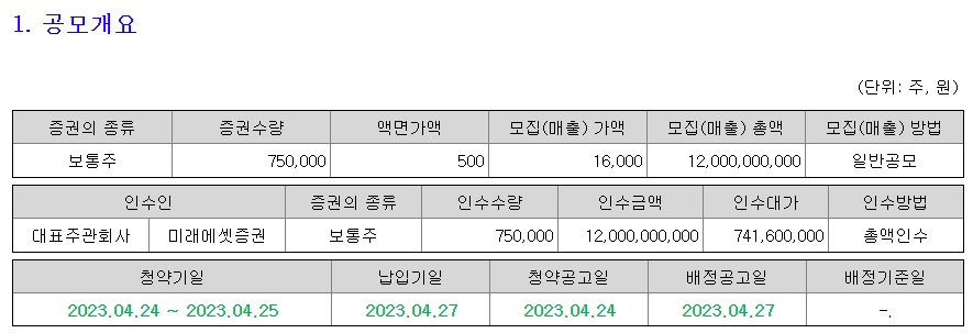 -> 청약 증거금 환불일 : 2023년 04월 27일(목)